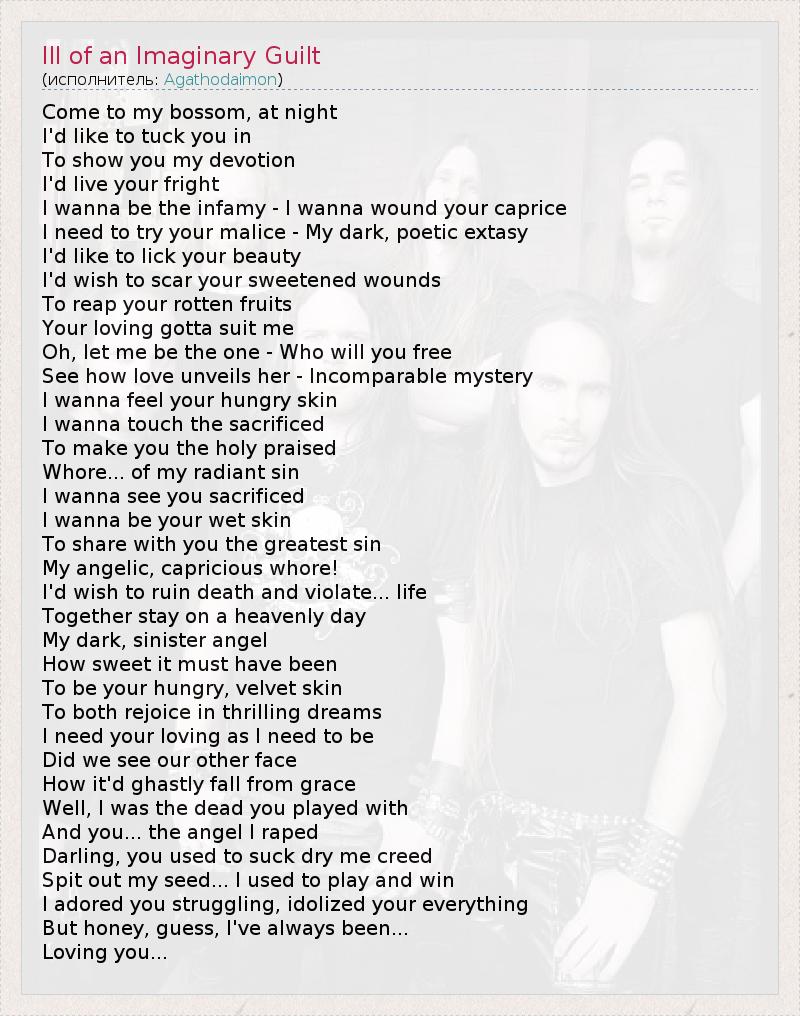 А как ты думаешь, о чем песня "Ill of an Imaginary Guilt" ?