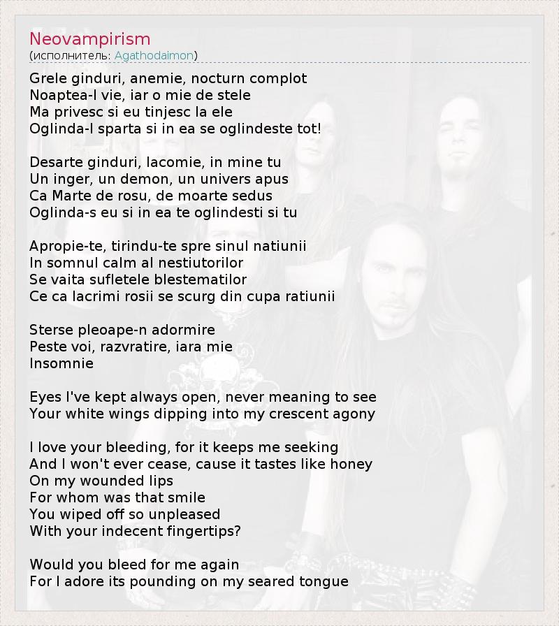 А как ты думаешь, о чем песня "Neovampirism" ?