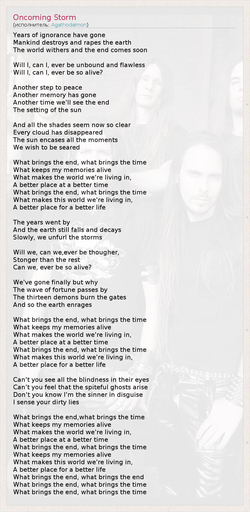 А как ты думаешь, о чем песня "Oncoming Storm" ?