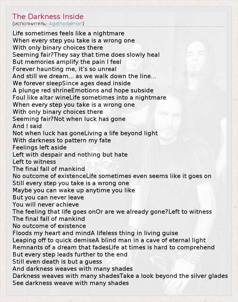 А как ты думаешь, о чем песня "The Darkness Inside" ?
