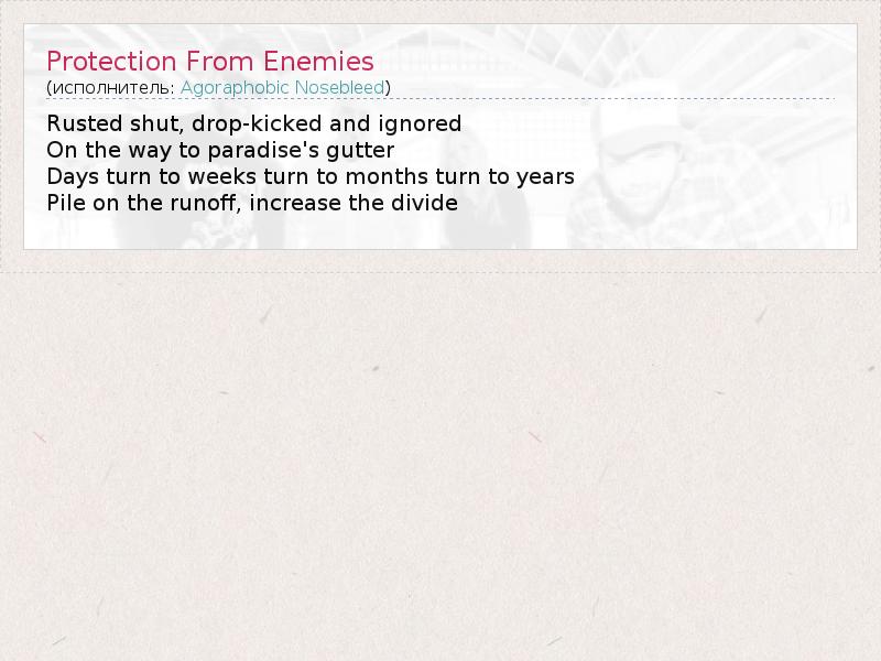 А как ты думаешь, о чем песня "Protection From Enemies" ?