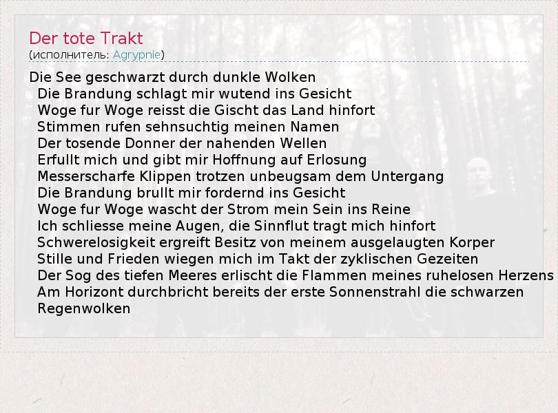 А как ты думаешь, о чем песня "Der tote Trakt" ?