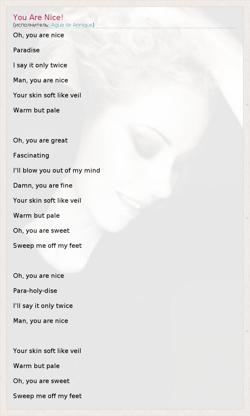 А как ты думаешь, о чем песня "You Are Nice!" ?