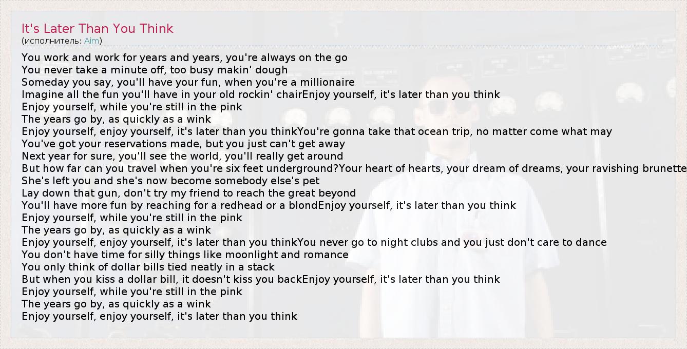 ГлавнаяИсполнителиAimIt's Later Than You Think