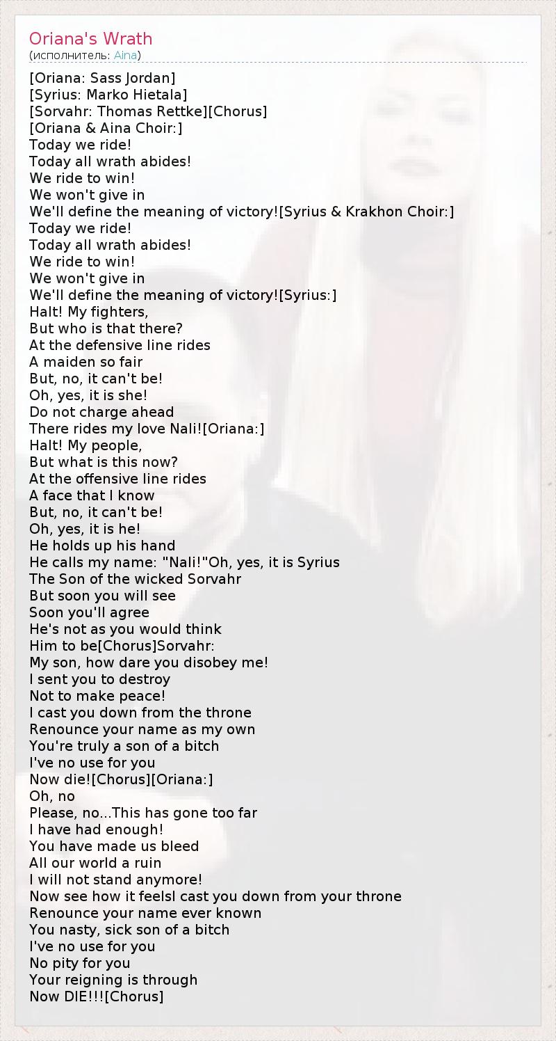 А как ты думаешь, о чем песня "Oriana's Wrath" ?