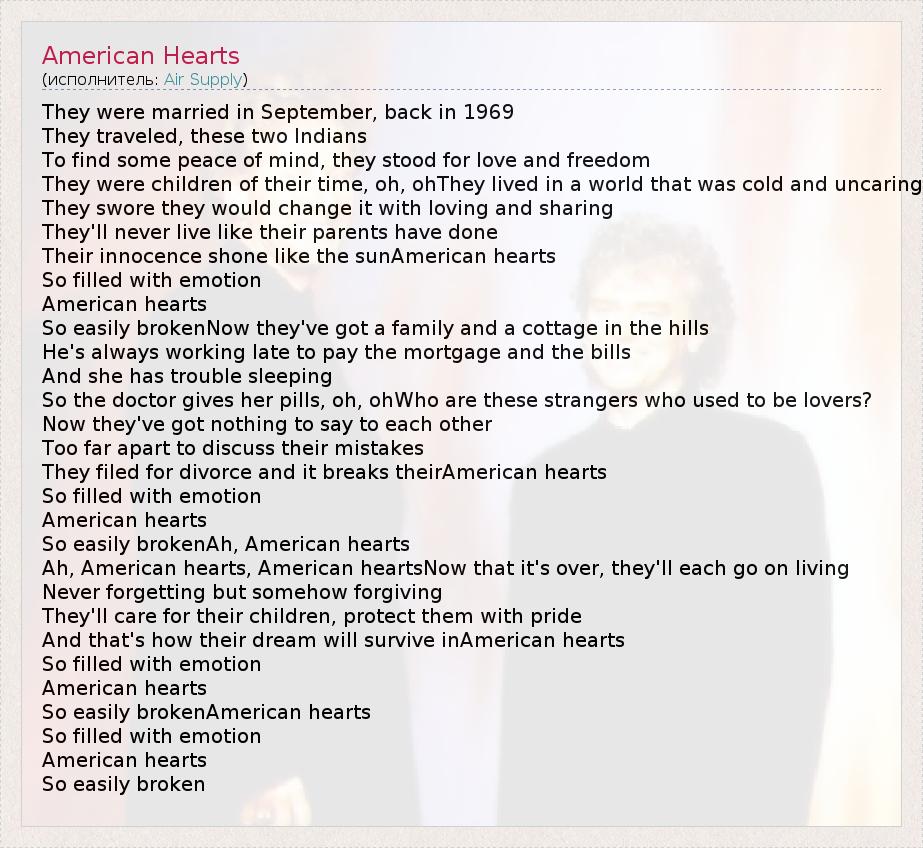 А как ты думаешь, о чем песня "American Hearts" ?