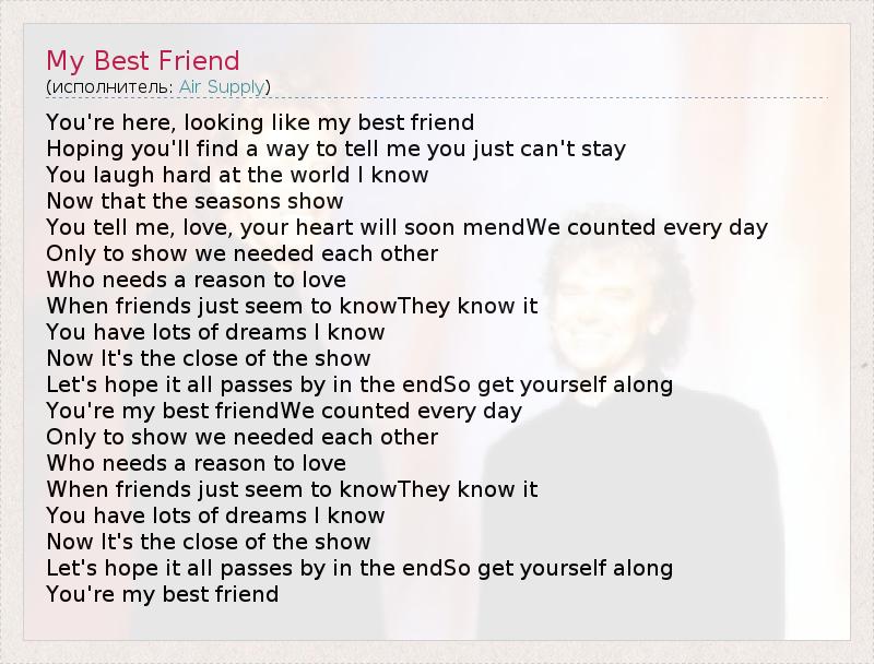 А как ты думаешь, о чем песня "My Best Friend" ?