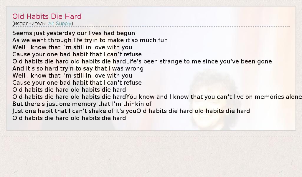 А как ты думаешь, о чем песня "Old Habits Die Hard" ?