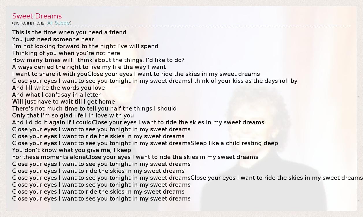 А как ты думаешь, о чем песня "Sweet Dreams" ?