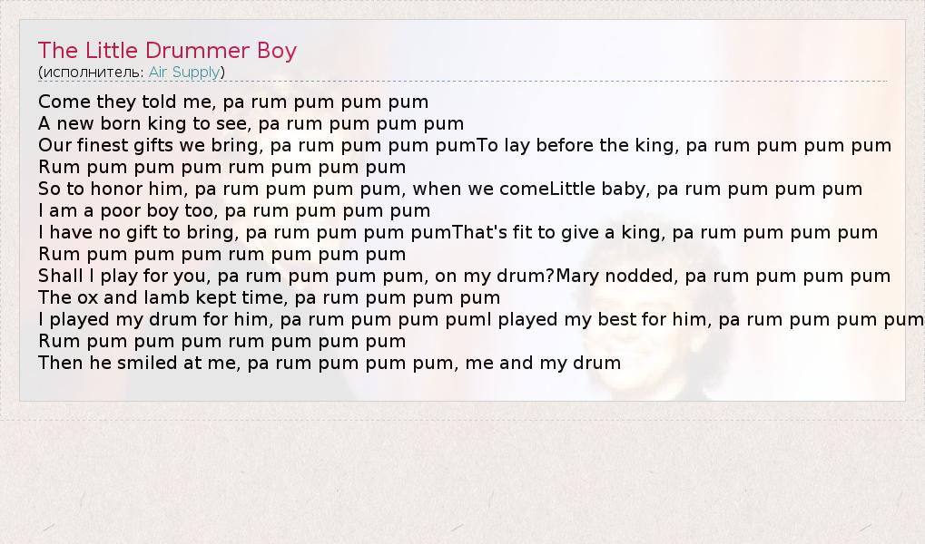 ГлавнаяИсполнителиAir SupplyThe Little Drummer Boy
