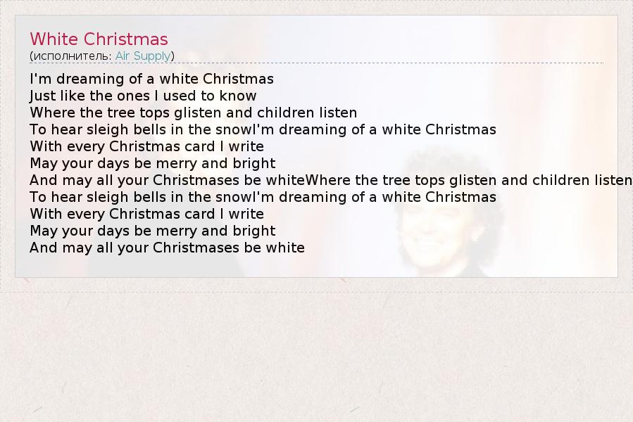 To hear sleigh bells in the snowI'm dreaming of a white Christmas