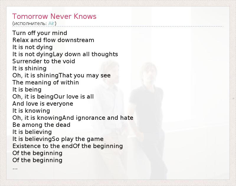А как ты думаешь, о чем песня "Tomorrow Never Knows" ?