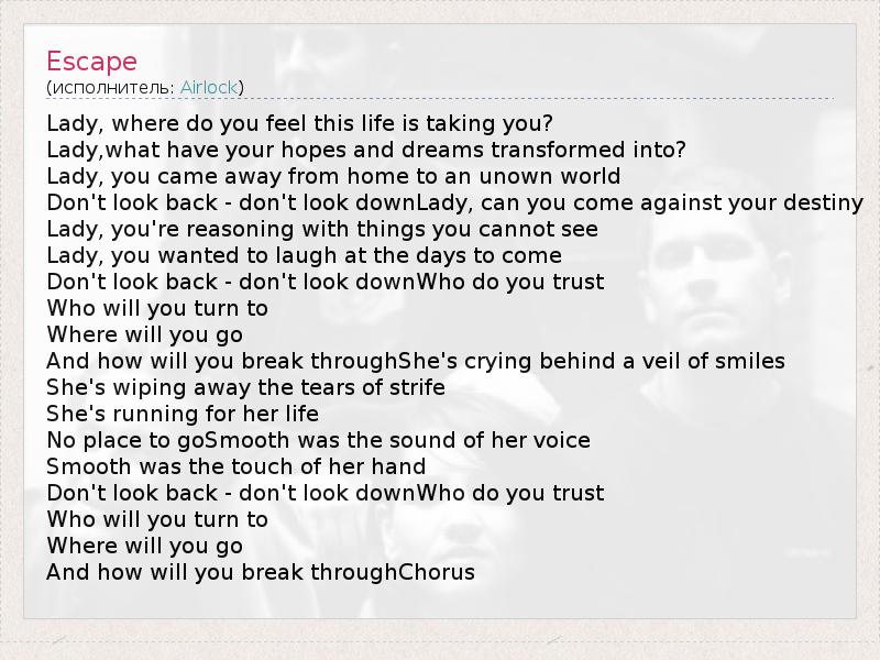 А как ты думаешь, о чем песня "Escape" ?