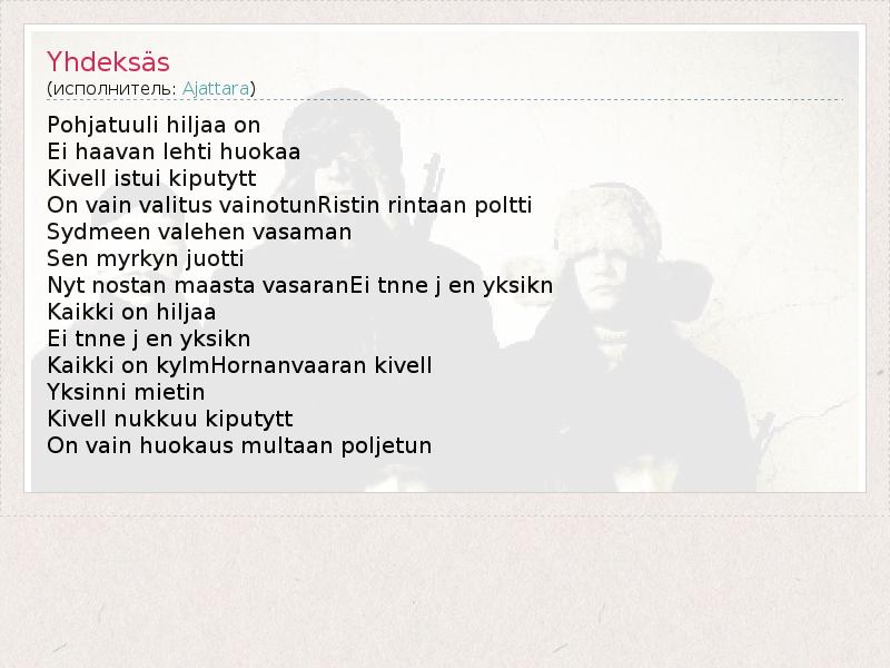 А как ты думаешь, о чем песня "Yhdeksäs" ?