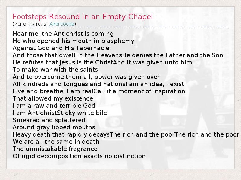 ГлавнаяИсполнителиAkercockeFootsteps Resound in an Empty Chapel