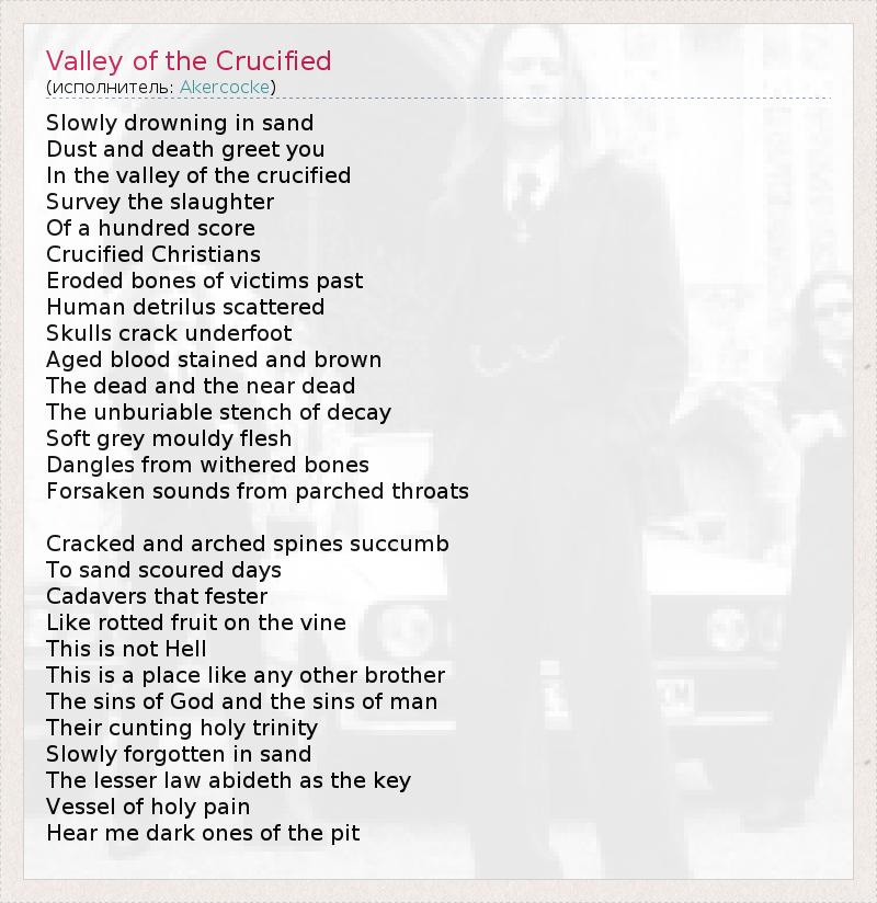 А как ты думаешь, о чем песня "Valley of the Crucified" ?