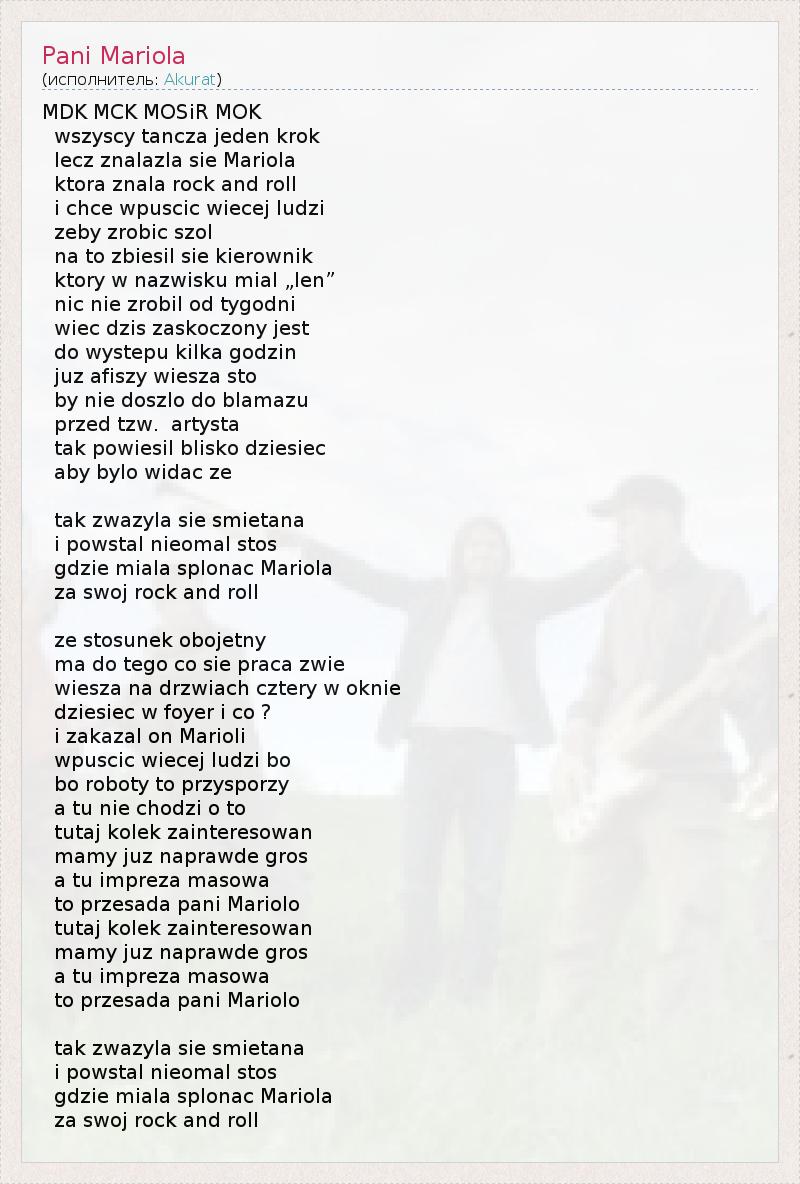 А как ты думаешь, о чем песня "Pani Mariola" ?