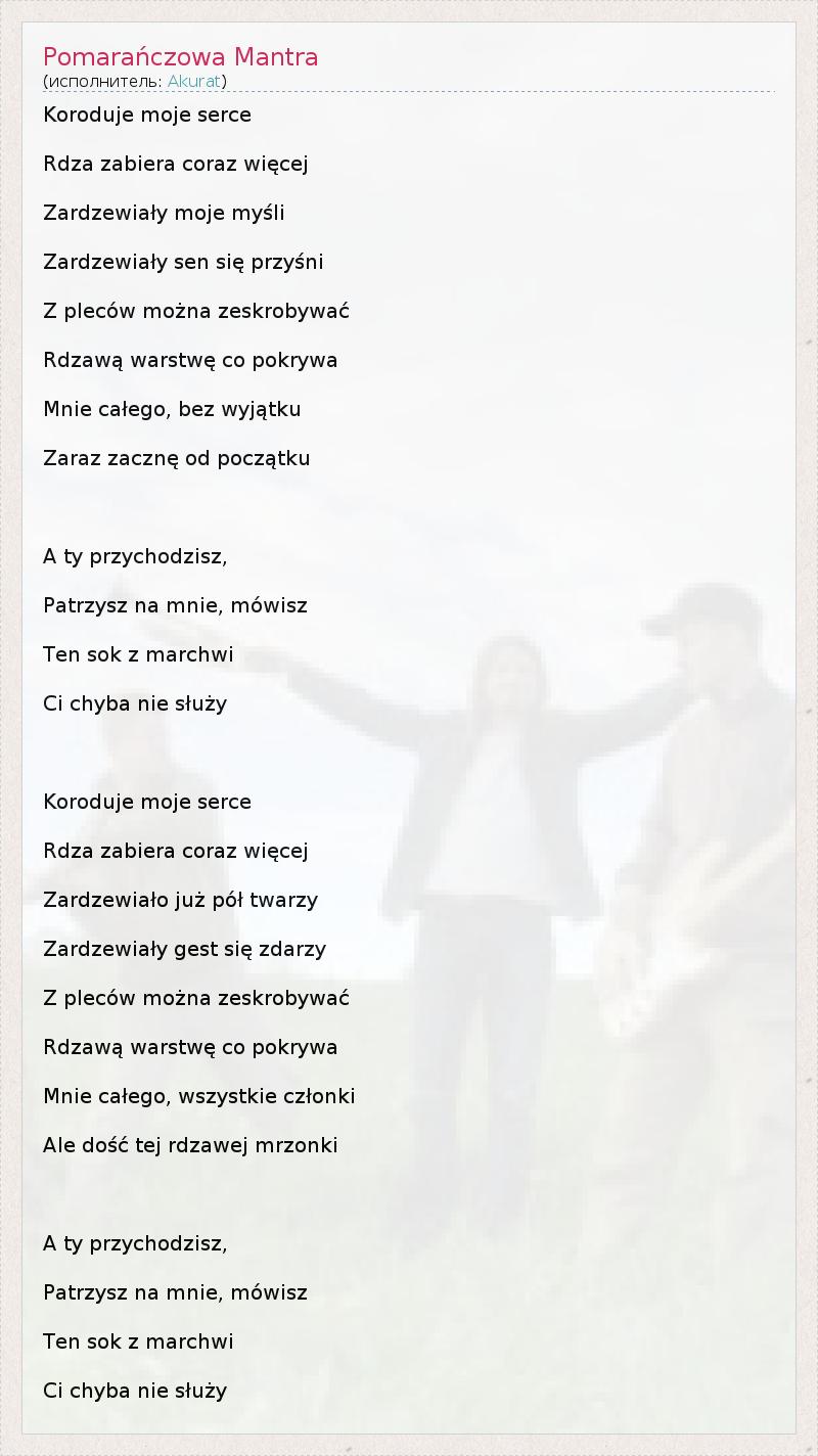 А как ты думаешь, о чем песня "Pomarańczowa Mantra" ?