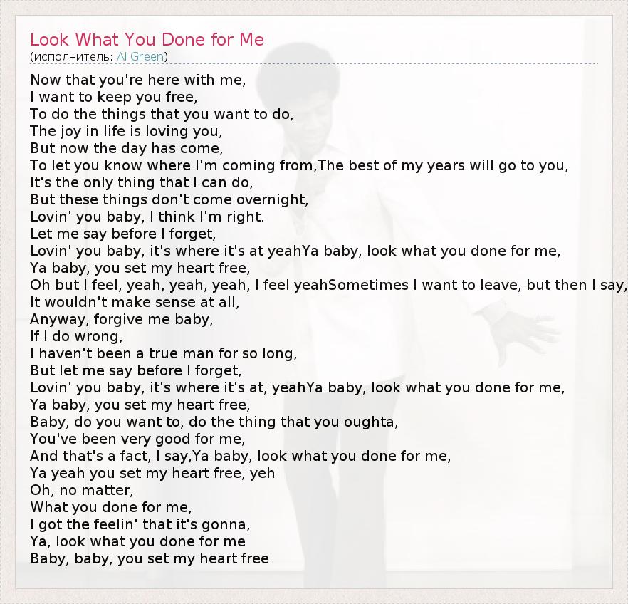 А как ты думаешь, о чем песня "Look What You Done for Me" ?