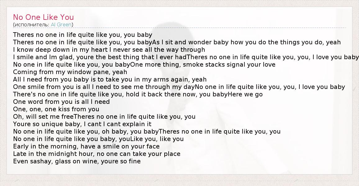 No one in life quite like you, oh baby, you babyTheres no one in life quite like you, you