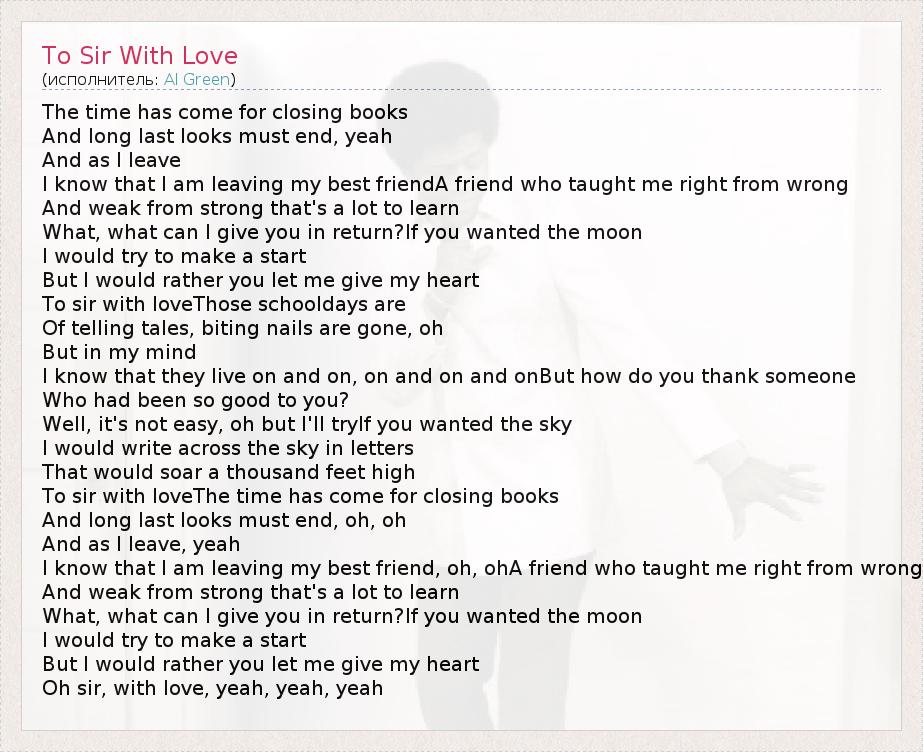 А как ты думаешь, о чем песня "To Sir With Love" ?