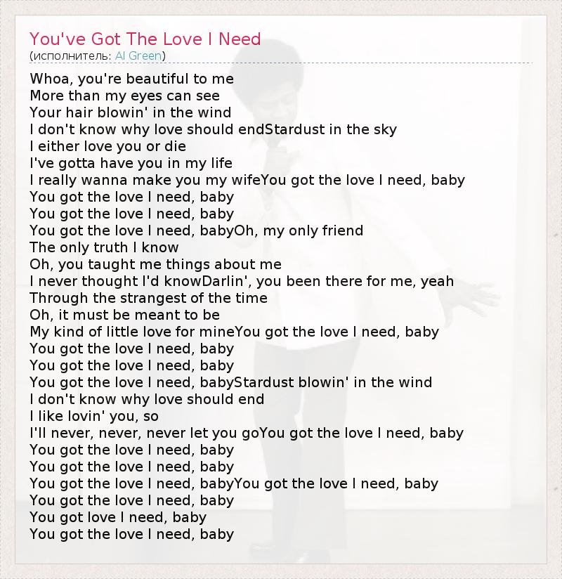 А как ты думаешь, о чем песня "You've Got The Love I Need" ?