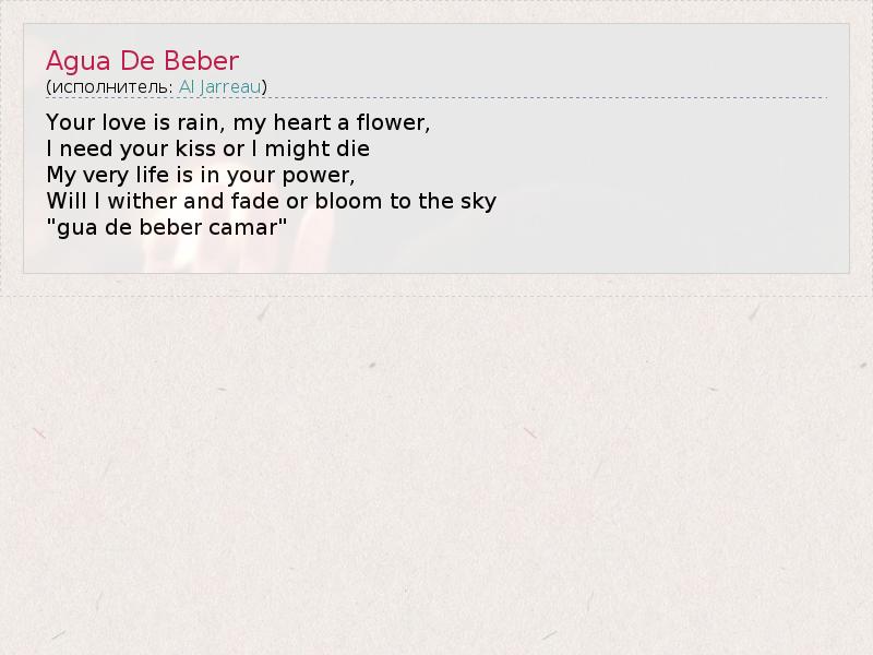 А как ты думаешь, о чем песня "Agua De Beber" ?