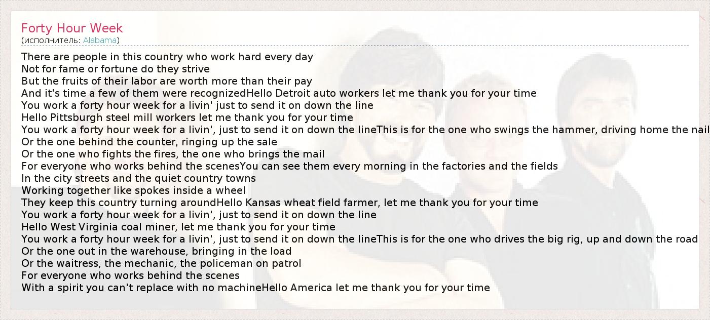 А как ты думаешь, о чем песня "Forty Hour Week" ?