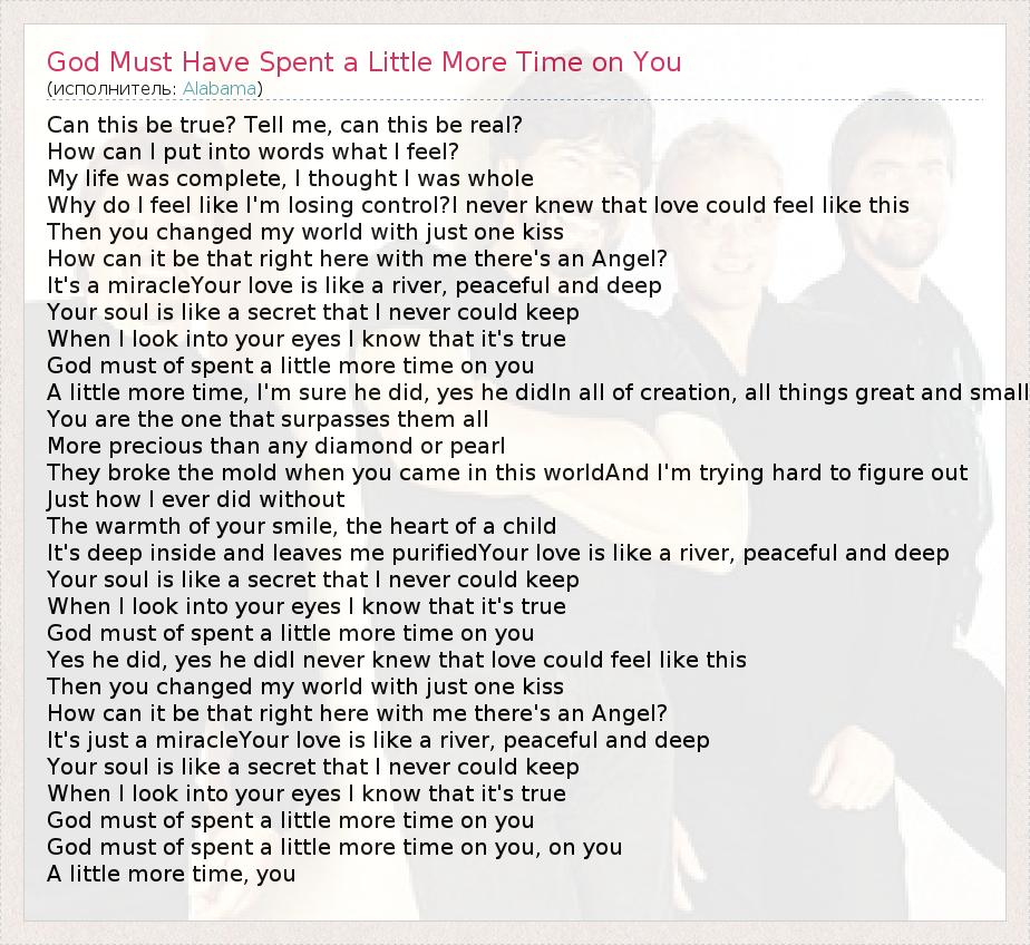 ГлавнаяИсполнителиAlabamaGod Must Have Spent a Little More Time on You