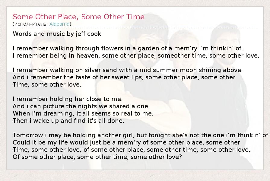 ГлавнаяИсполнителиAlabamaSome Other Place, Some Other Time