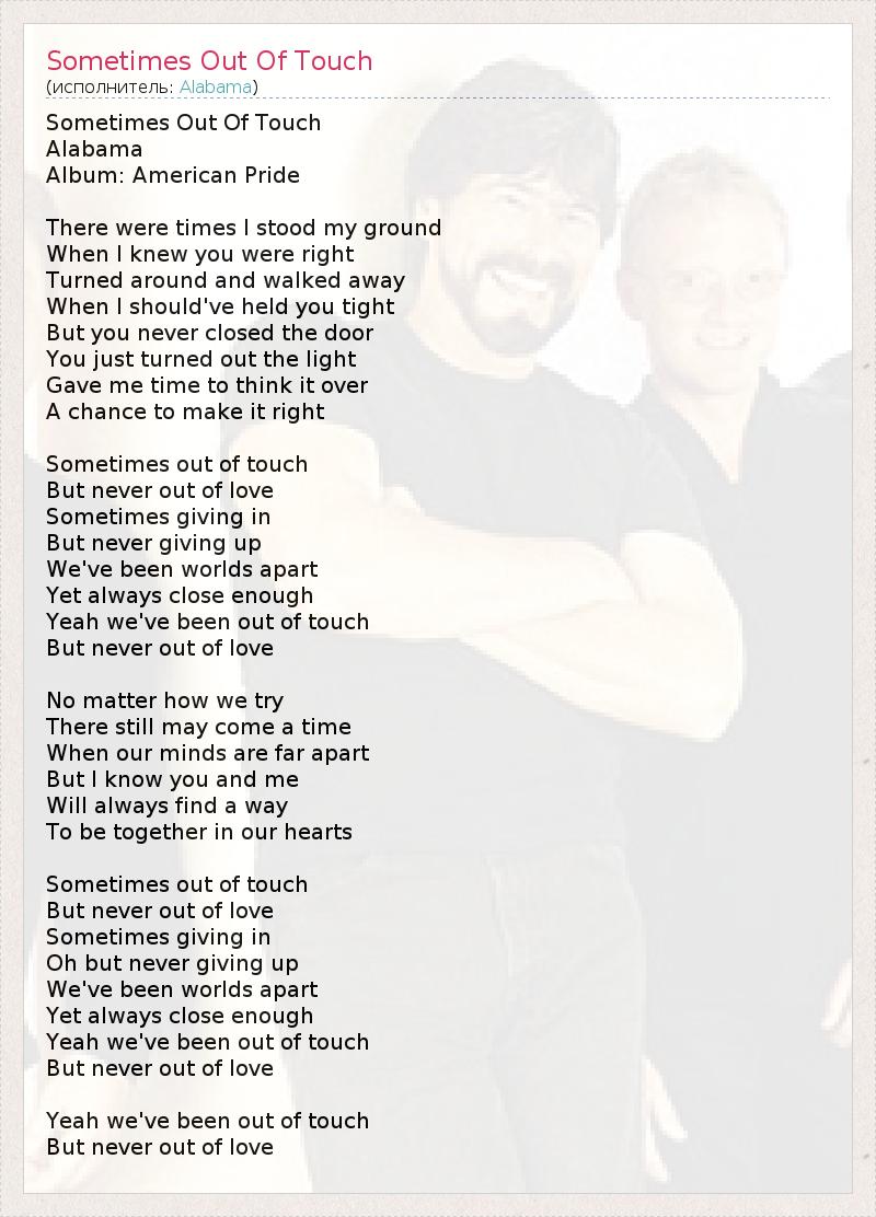 ГлавнаяИсполнителиAlabamaSometimes Out Of Touch