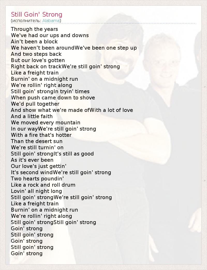 А как ты думаешь, о чем песня "Still Goin' Strong" ?