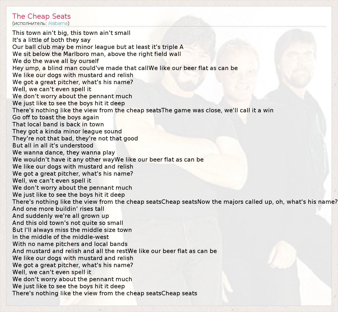А как ты думаешь, о чем песня "The Cheap Seats" ?