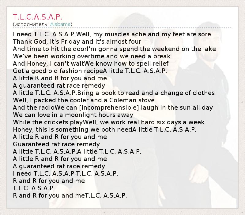 I need T.L.C. A.S.A.P.T.L.C. A.S.A.P.