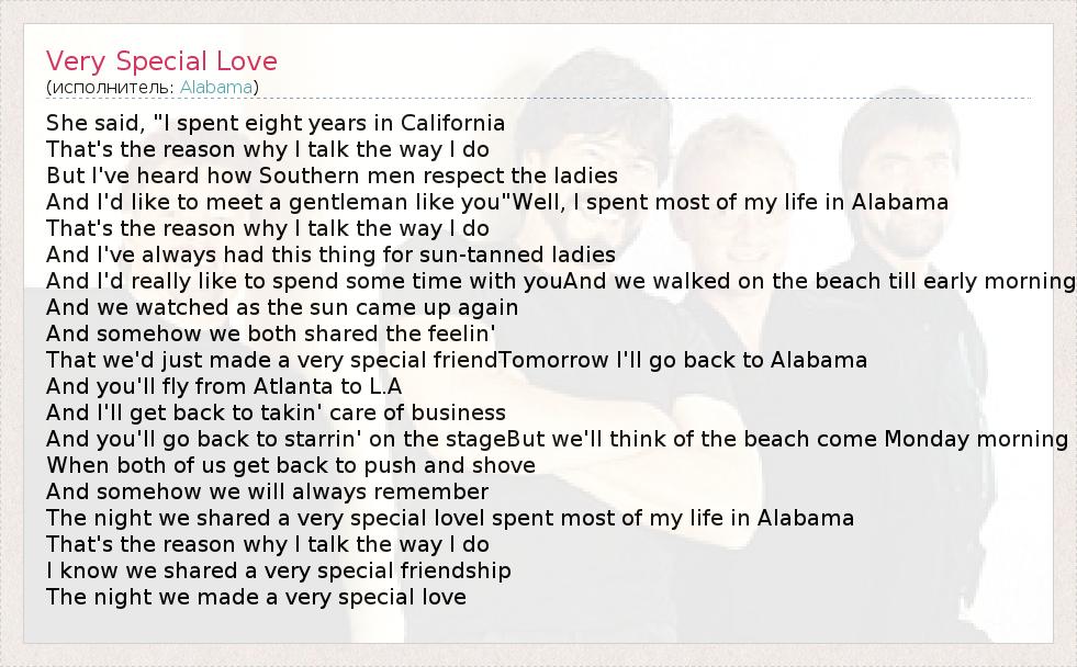 А как ты думаешь, о чем песня "Very Special Love" ?