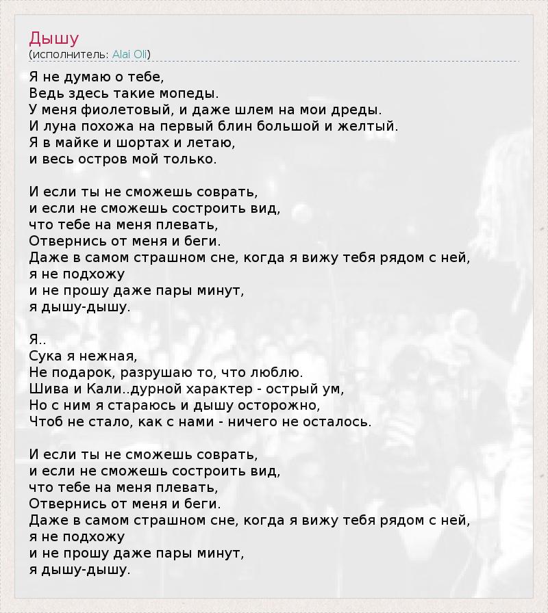 А как ты думаешь, о чем песня "Дышу" ?