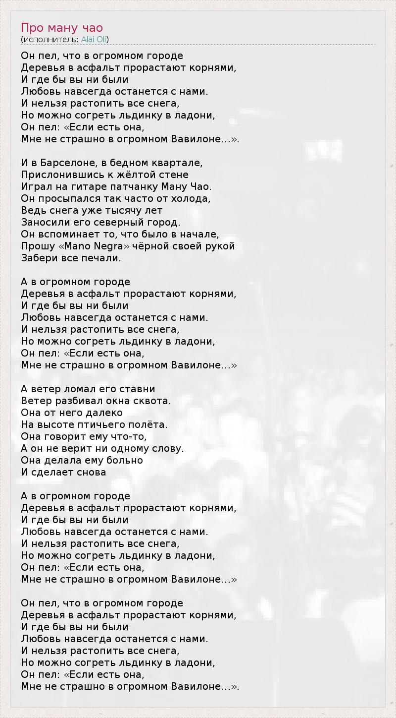 ГлавнаяИсполнителиAlai OliПро ману чао
