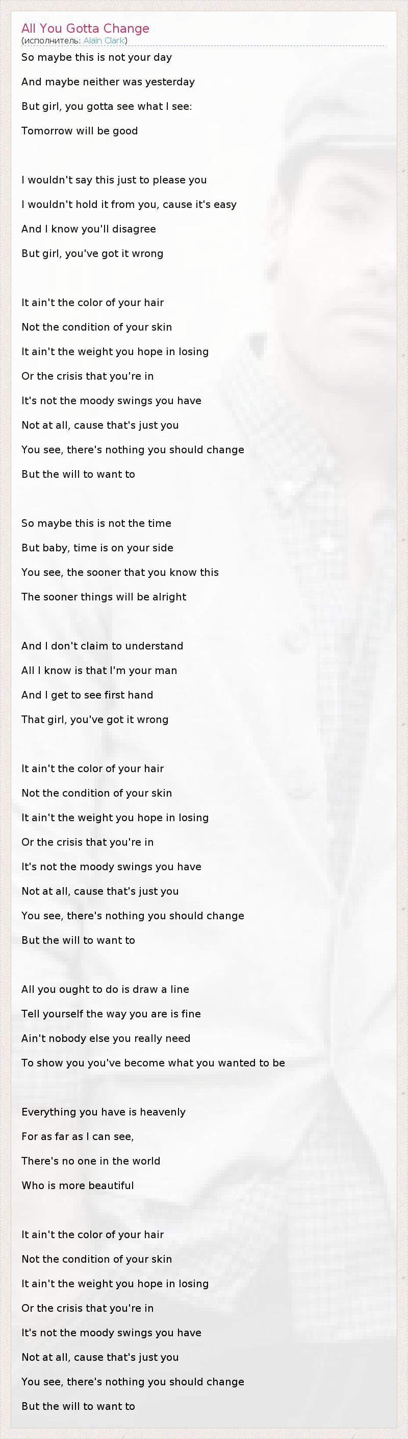 А как ты думаешь, о чем песня "All You Gotta Change" ?