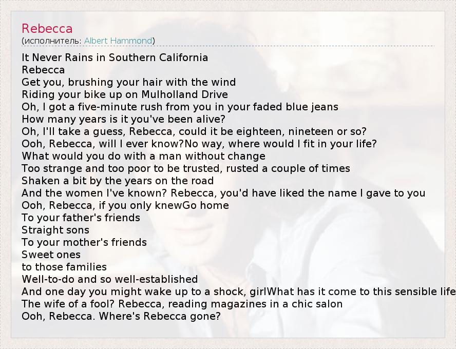 Ooh, Rebecca, will I ever know?No way, where would I fit in your life?