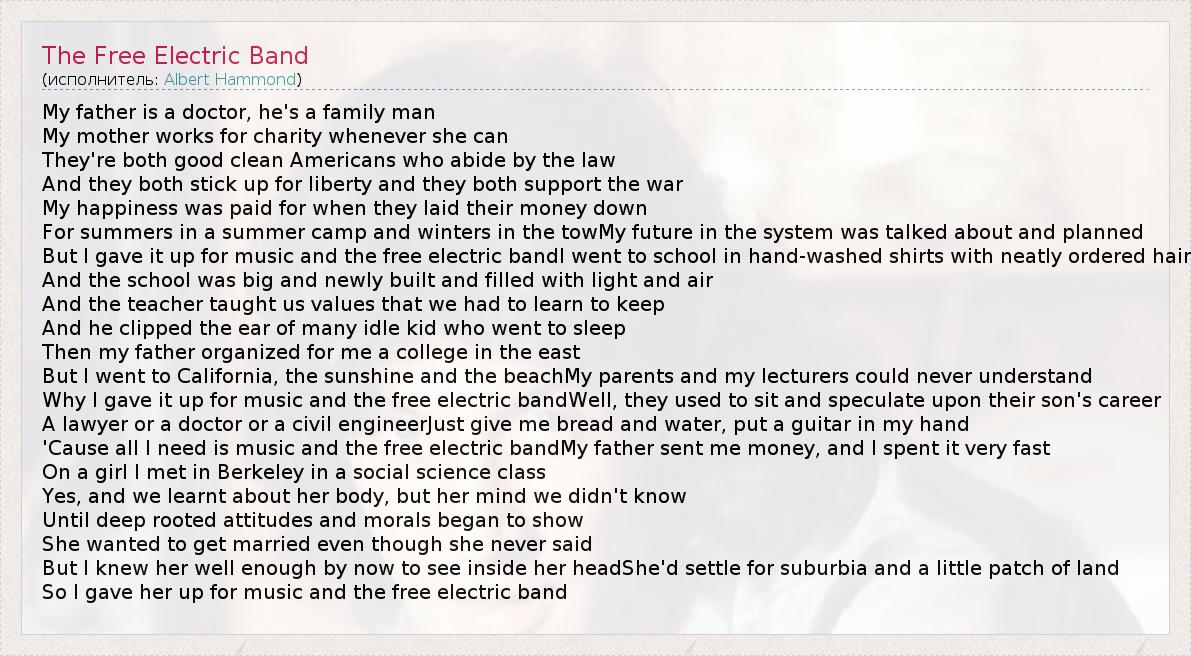 А как ты думаешь, о чем песня "The Free Electric Band" ?