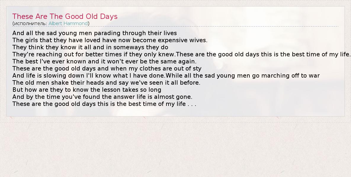 А как ты думаешь, о чем песня "These Are The Good Old Days" ?