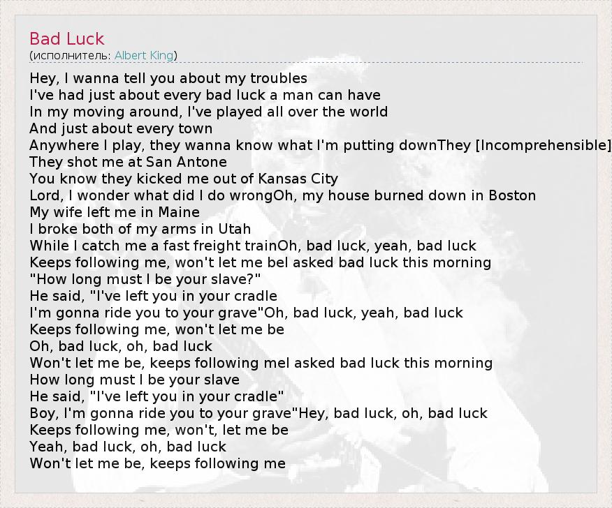 А как ты думаешь, о чем песня "Bad Luck" ?