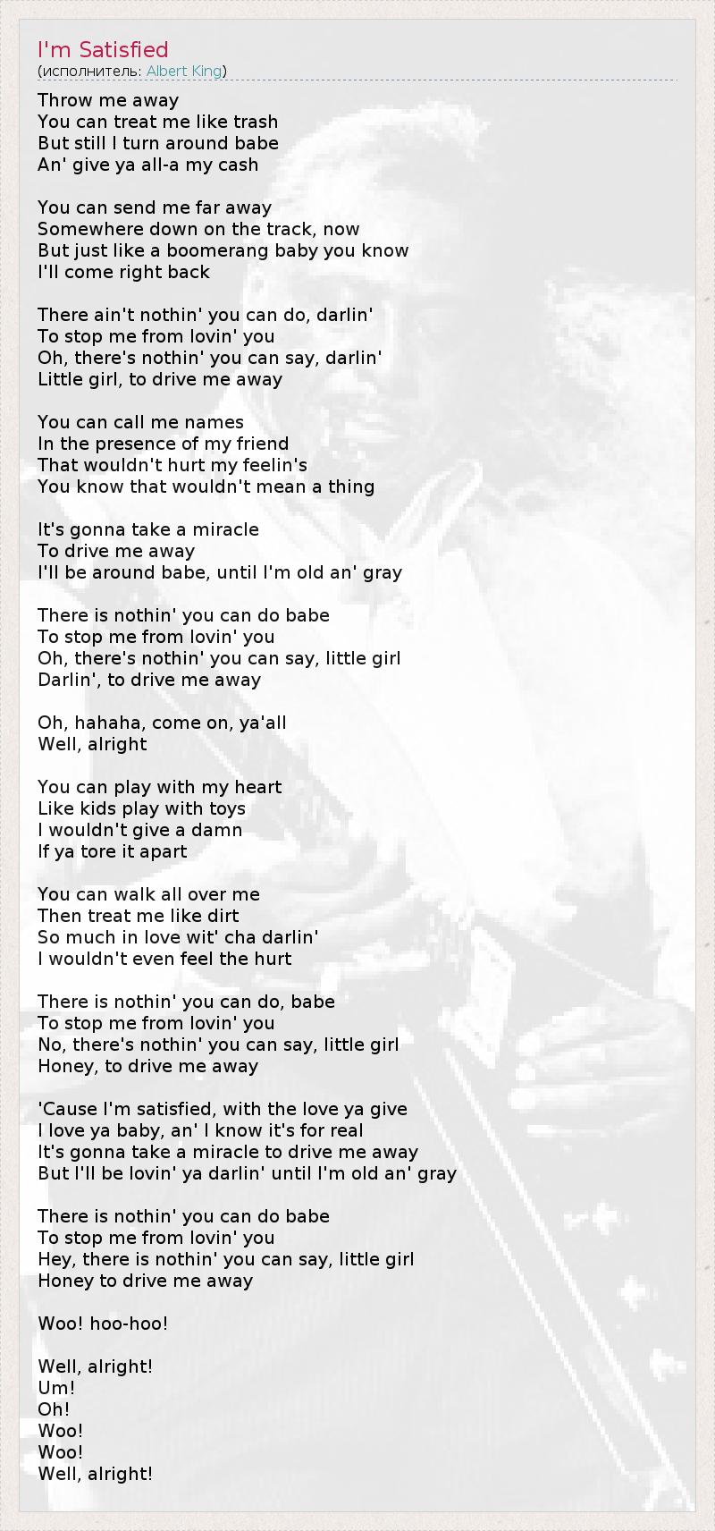 А как ты думаешь, о чем песня "I'm Satisfied" ?