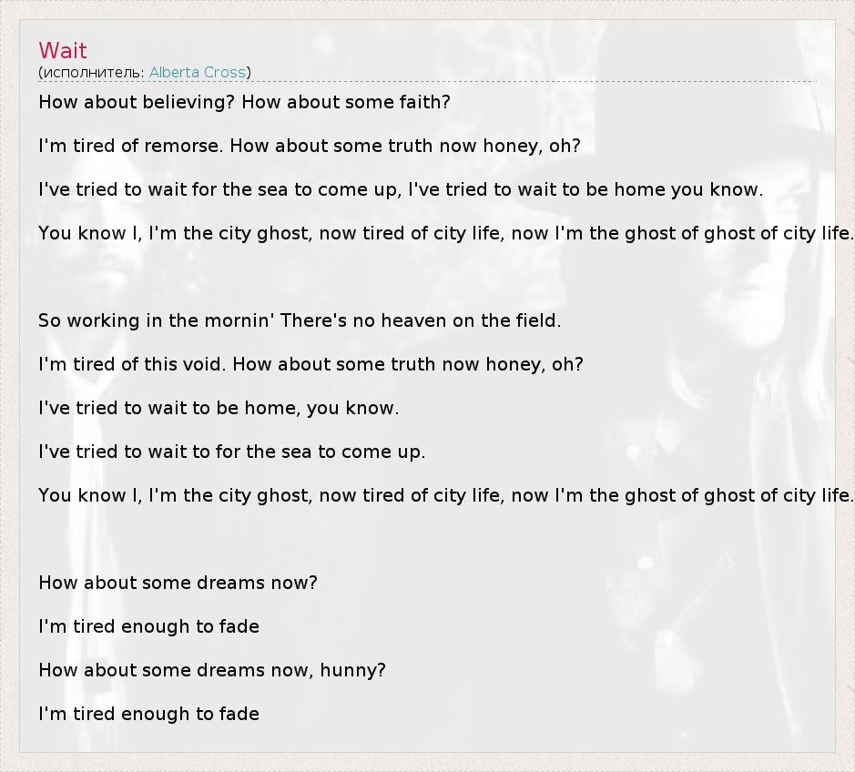 You know I, I'm the city ghost, now tired of city life, now I'm the ghost of ghost of city life.