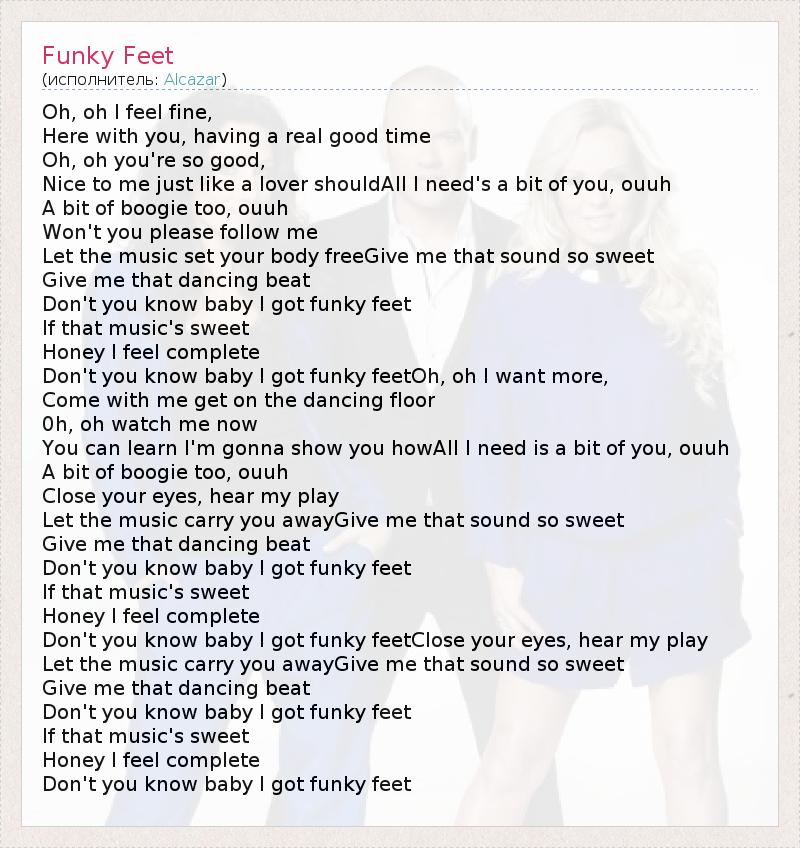 Don't you know baby I got funky feetClose your eyes, hear my play