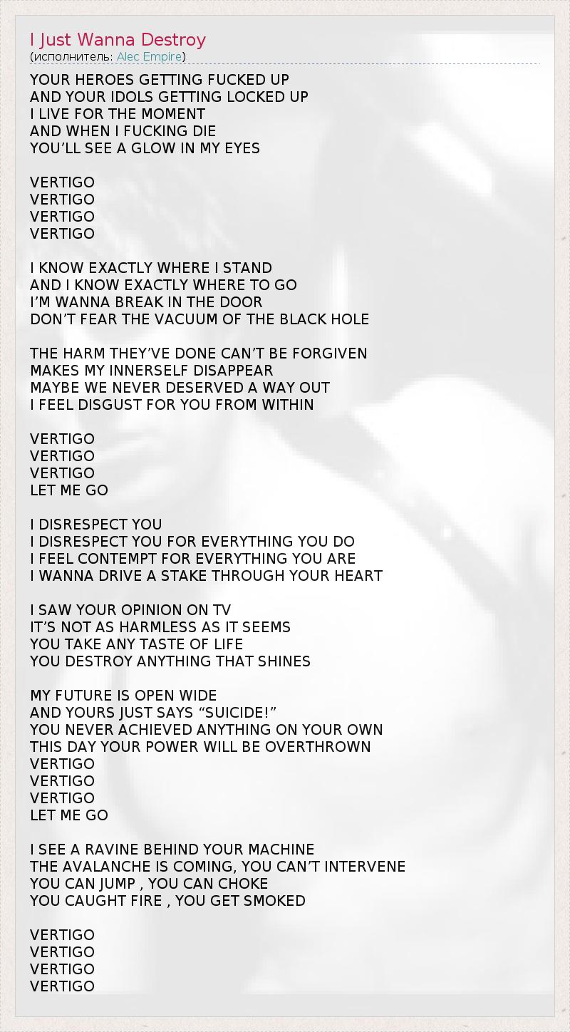 А как ты думаешь, о чем песня "I Just Wanna Destroy" ?