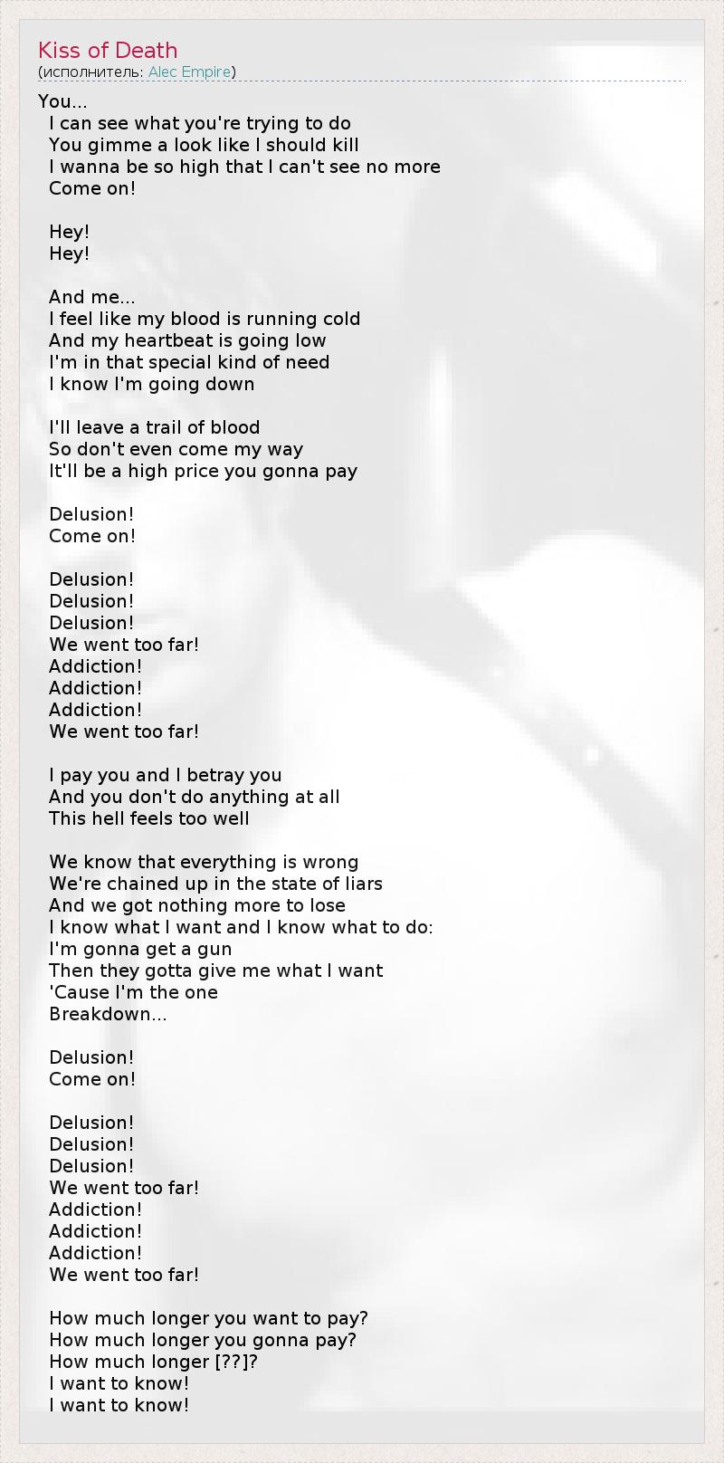 А как ты думаешь, о чем песня "Kiss of Death" ?