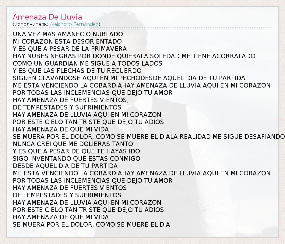 А как ты думаешь, о чем песня "Amenaza De Lluvia" ?