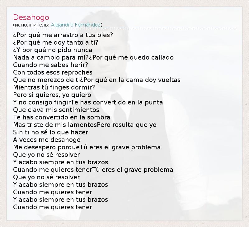 ¿Por qué me arrastro a tus pies? ¿Por qué me doy tanto a ti? ¿Y por qué no pido nunca Nada a cambio para mí?¿Por qué me quedo callado Cuando me sabes herir? Con todos esos reproches Que no merezco de ti¿Por qué en la cama doy vueltas Mientras tú finges dormir? Pero si quieres, yo quiero Y no consigo fingirTe has convertido en la punta Que clava mis sentimientos Te has convertido en la sombra Mas triste de mis lamentosPero resulta que yo Sin ti no sé lo que hacer A veces me desahogo Me desespero porqueTú eres el grave problema Que yo no sé resolver Y acabo siempre en tus brazos Cuando me quieres tenerTú eres el grave problema Que yo no sé resolver Y acabo siempre en tus brazos Cuando me quieres tener Y acabo siempre en tus brazos Cuando me quieres tener