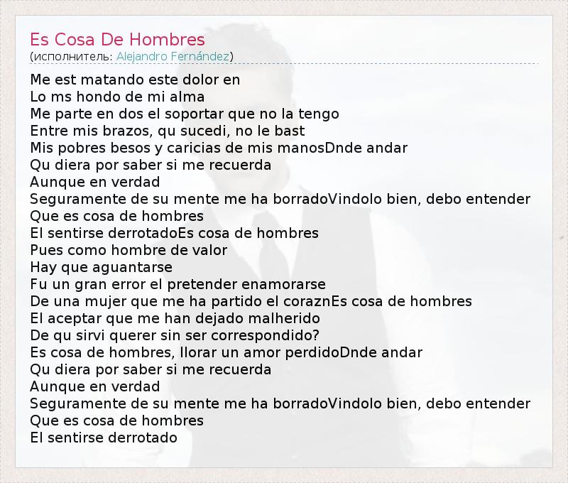 А как ты думаешь, о чем песня "Es Cosa De Hombres" ?